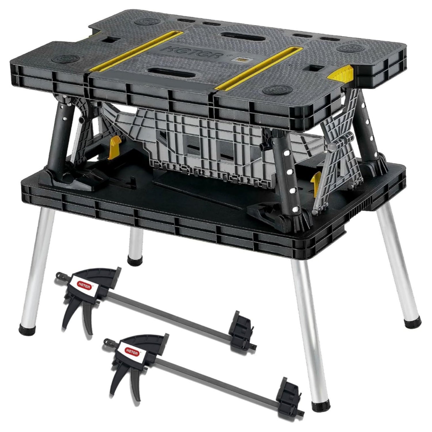 Keter Folding Work Table, Portable Workbench w/ 12" Clamps for Garage/Wood Shop
